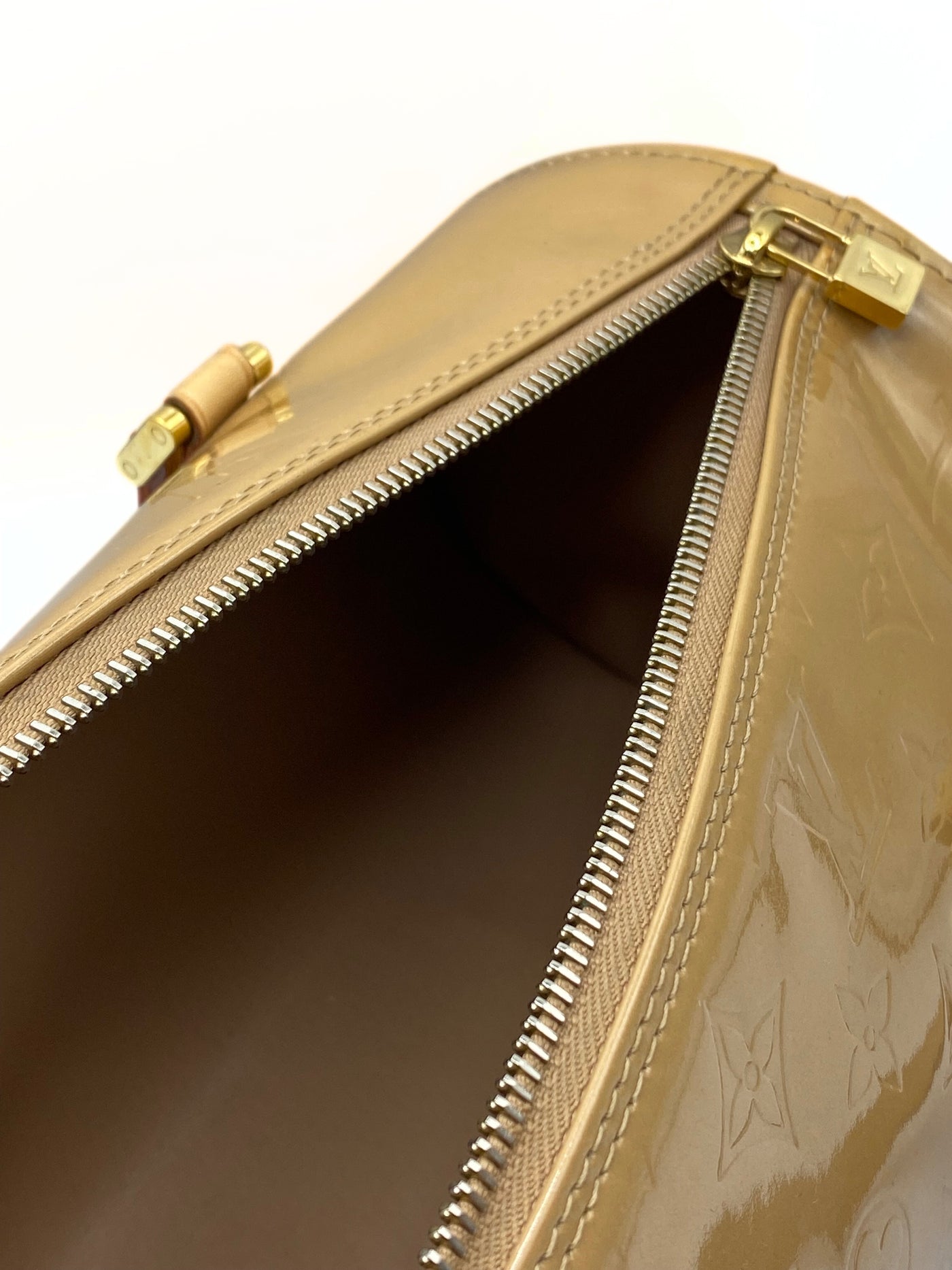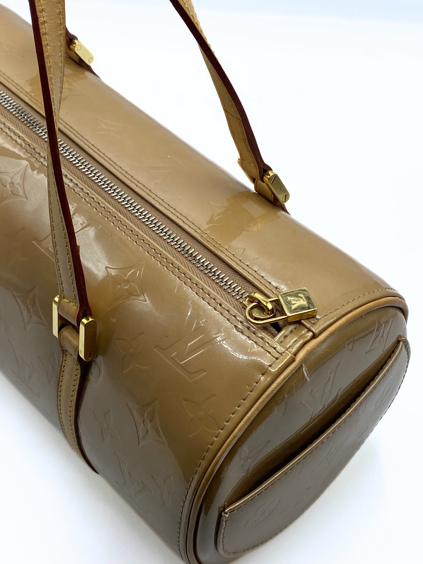 This Louis Vuitton Papillon 30 is crafted of beige pattent leather, featuring a zipper closure for secure storage. Combined the iconic style of the bag with the pattent leather, this bag is a perfect shoulder bag for everyday.