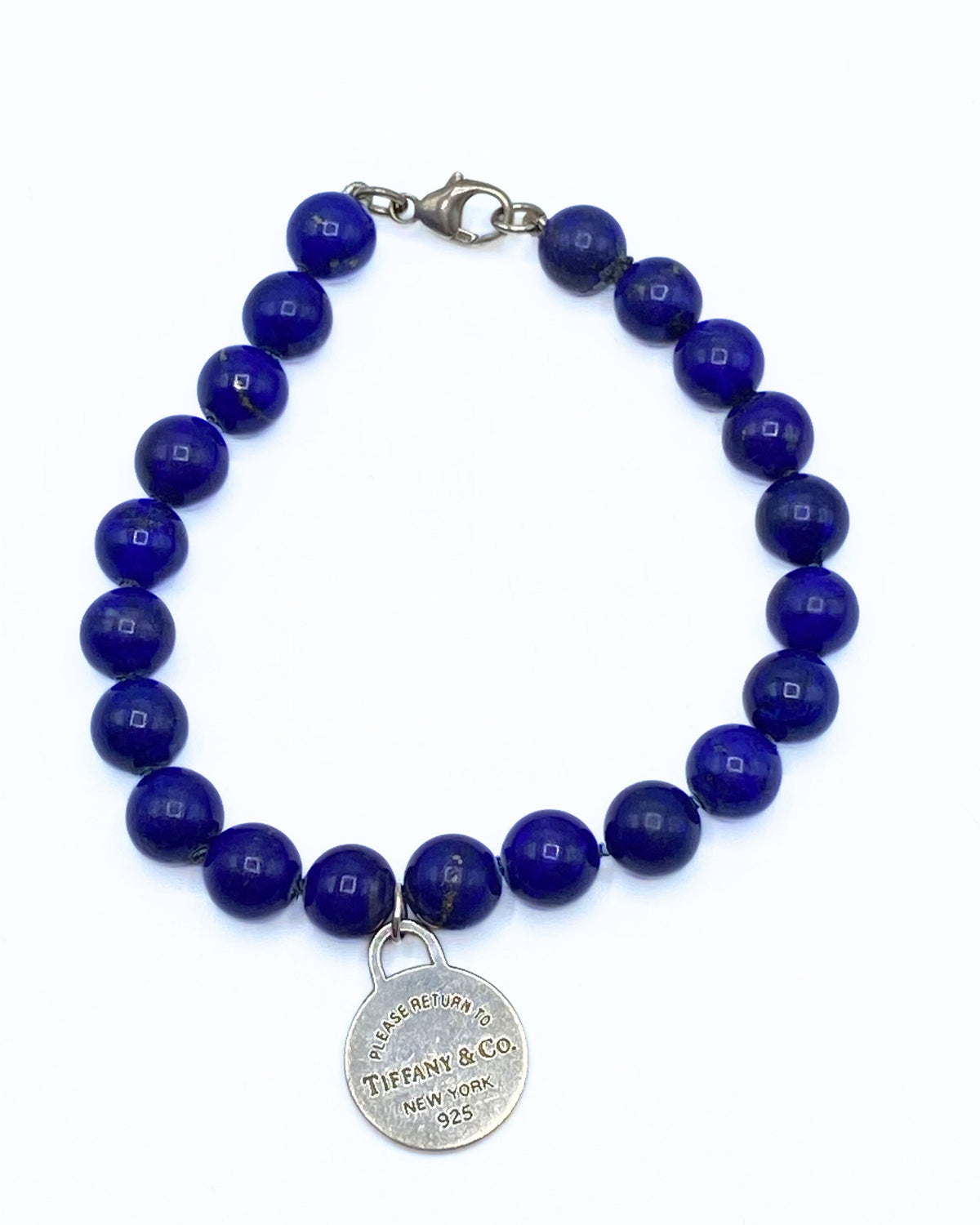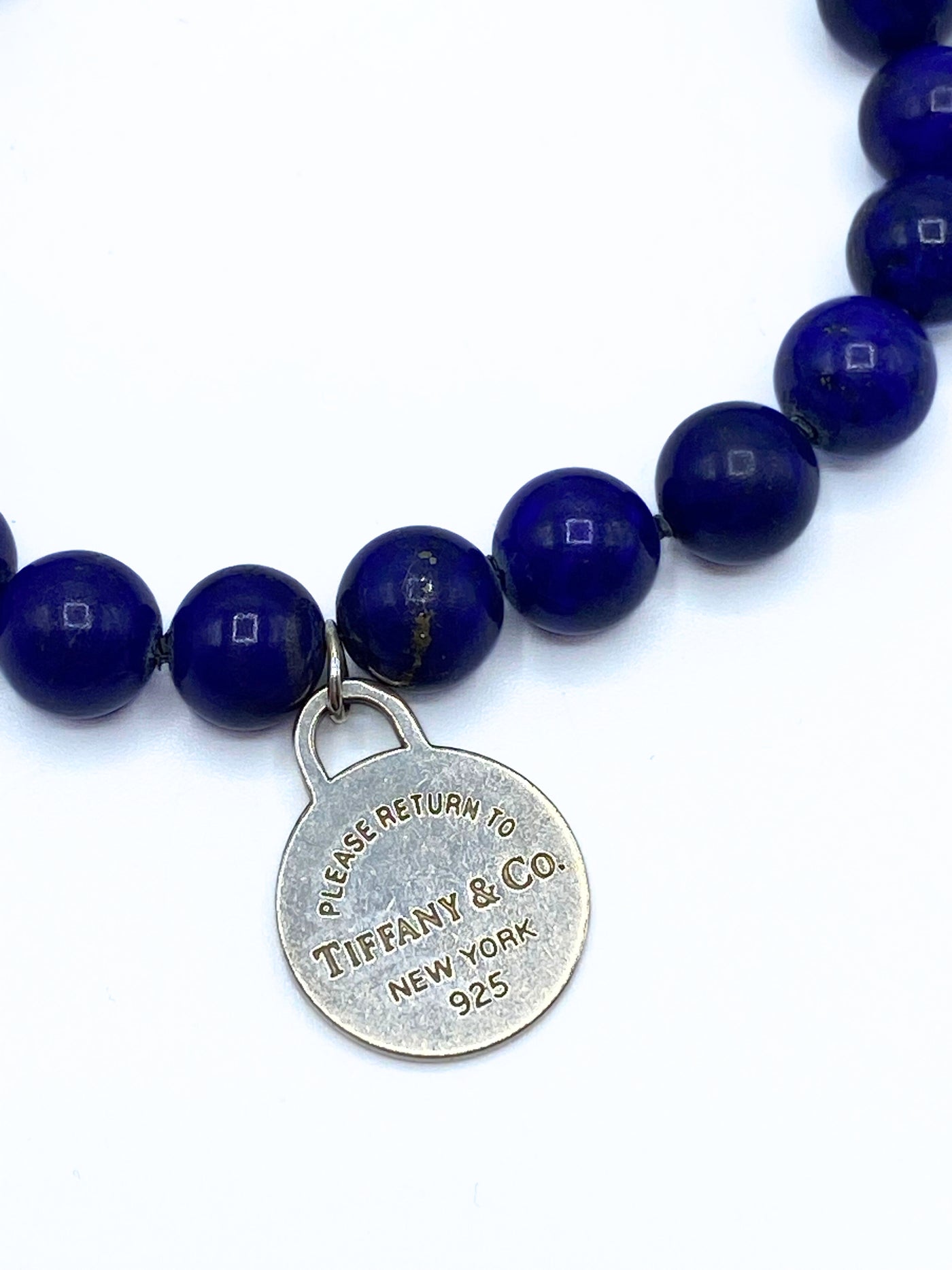 Tiffany Lapislazzuli Bracelet with the iconic charm of the brand "Please return to Tiffany" and big beads.