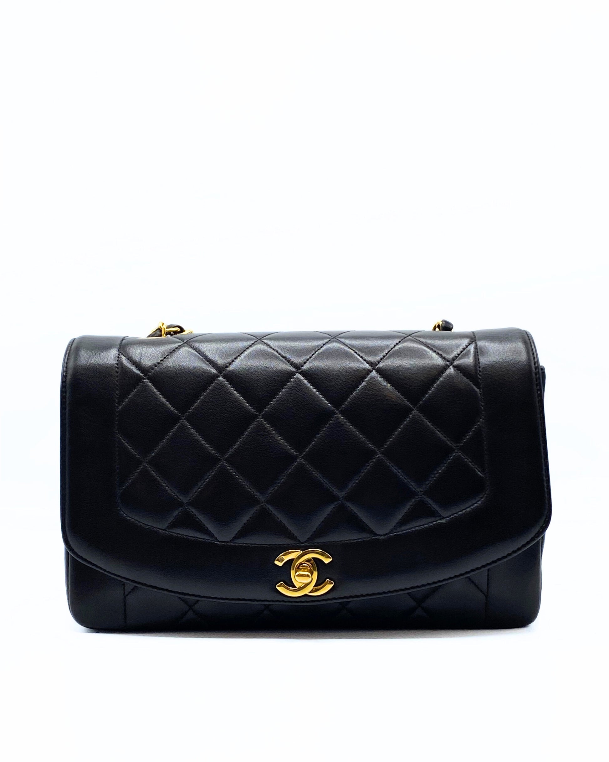 This Chanel Diana vintage is an iconic piece of the maison, It is a sleek accessory crafted from lambskiin leather in a classic black shade. Featuring elegantly designed 24k gold plated hardware.