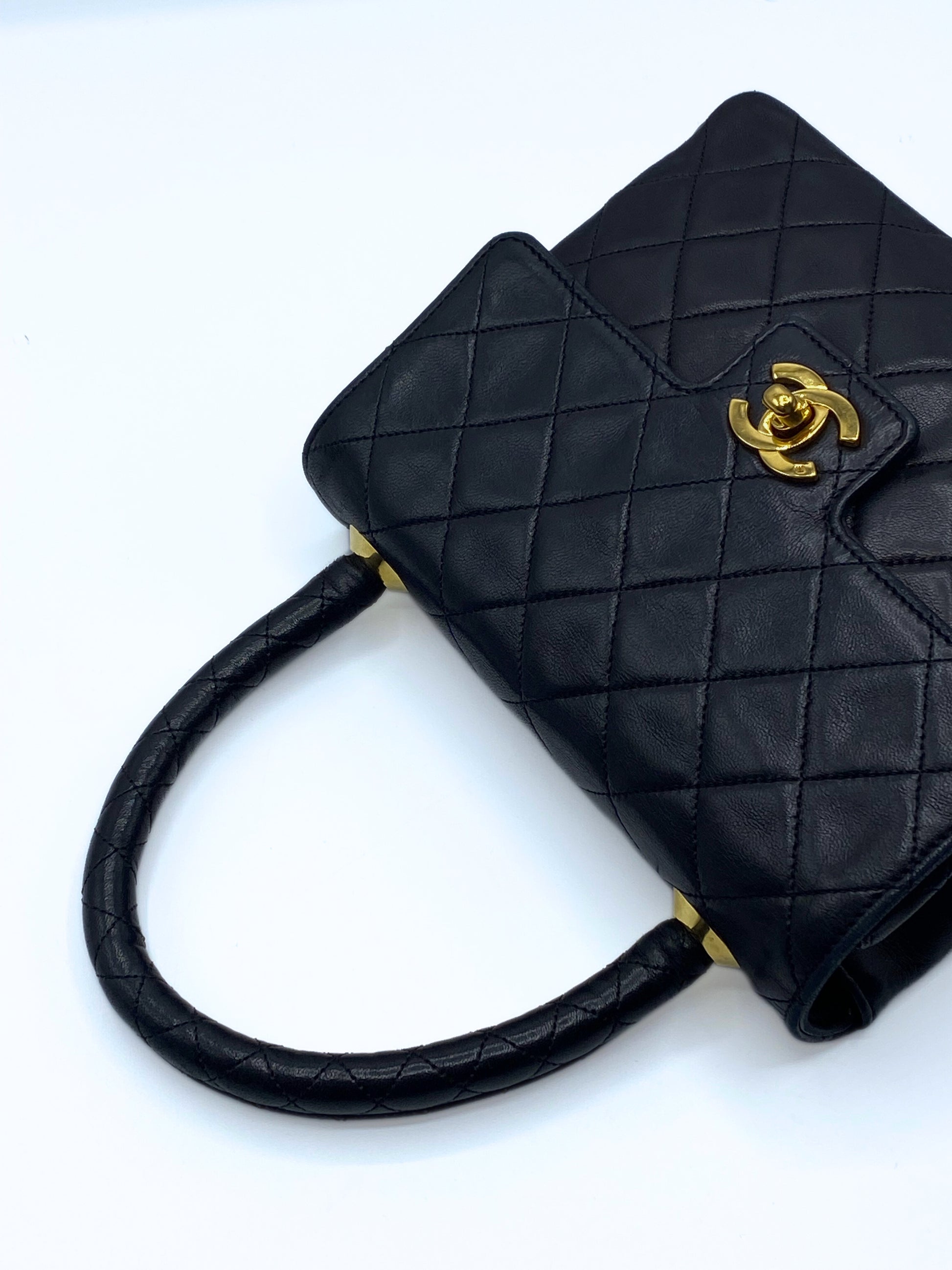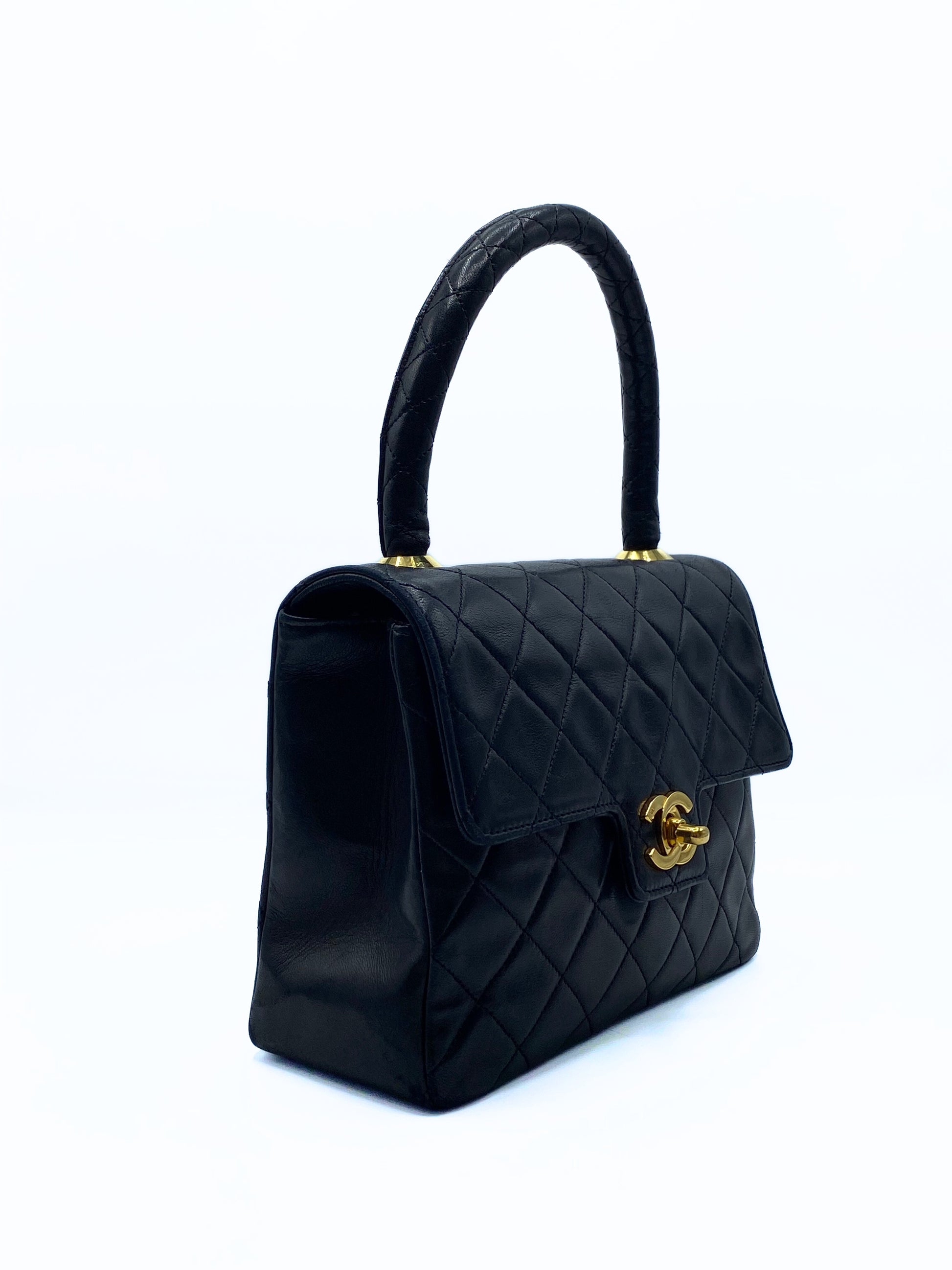 This Chanel Kelly Bag is crafted of lambskin leather and it have the iconic 24 carat gold hardware of the vintage Chanel bags. This bag have a Top Handle on top, and on the inside two little buttons with the CC logo. This bag is a very rare piece of history of the maison.